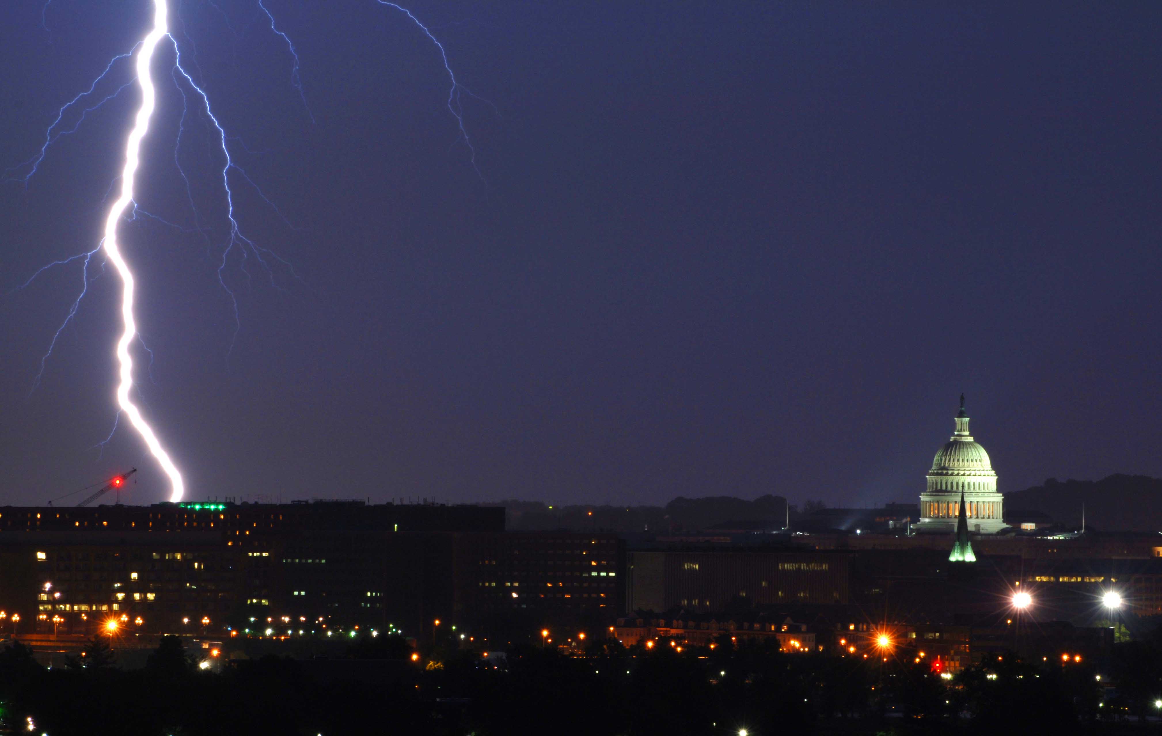 WASHINGTON — Lightning strikes near the U.S. Capitol building during a thunderstorm here May 14. (U.S. Air Force photo by Tech. Sgt. Cherie A. Thurlby)
